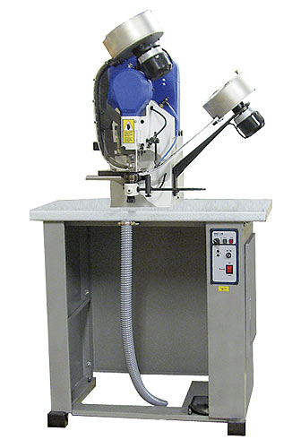 Automatische Zuführung von Ösen-Unter und Oberteilen. Das Ausstanzen der Löcher und das Verpressen der Ösen ist ein Arbeitsgang. Schnelles und sauberes Zuführen durch präzise Metallführung.